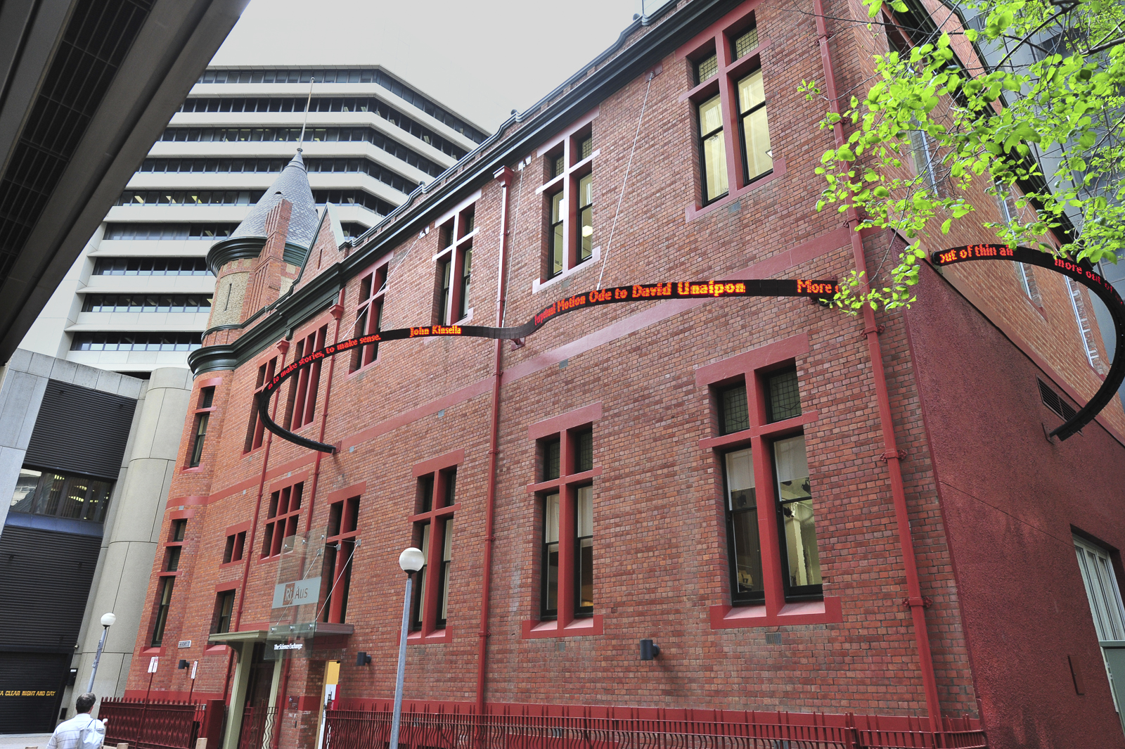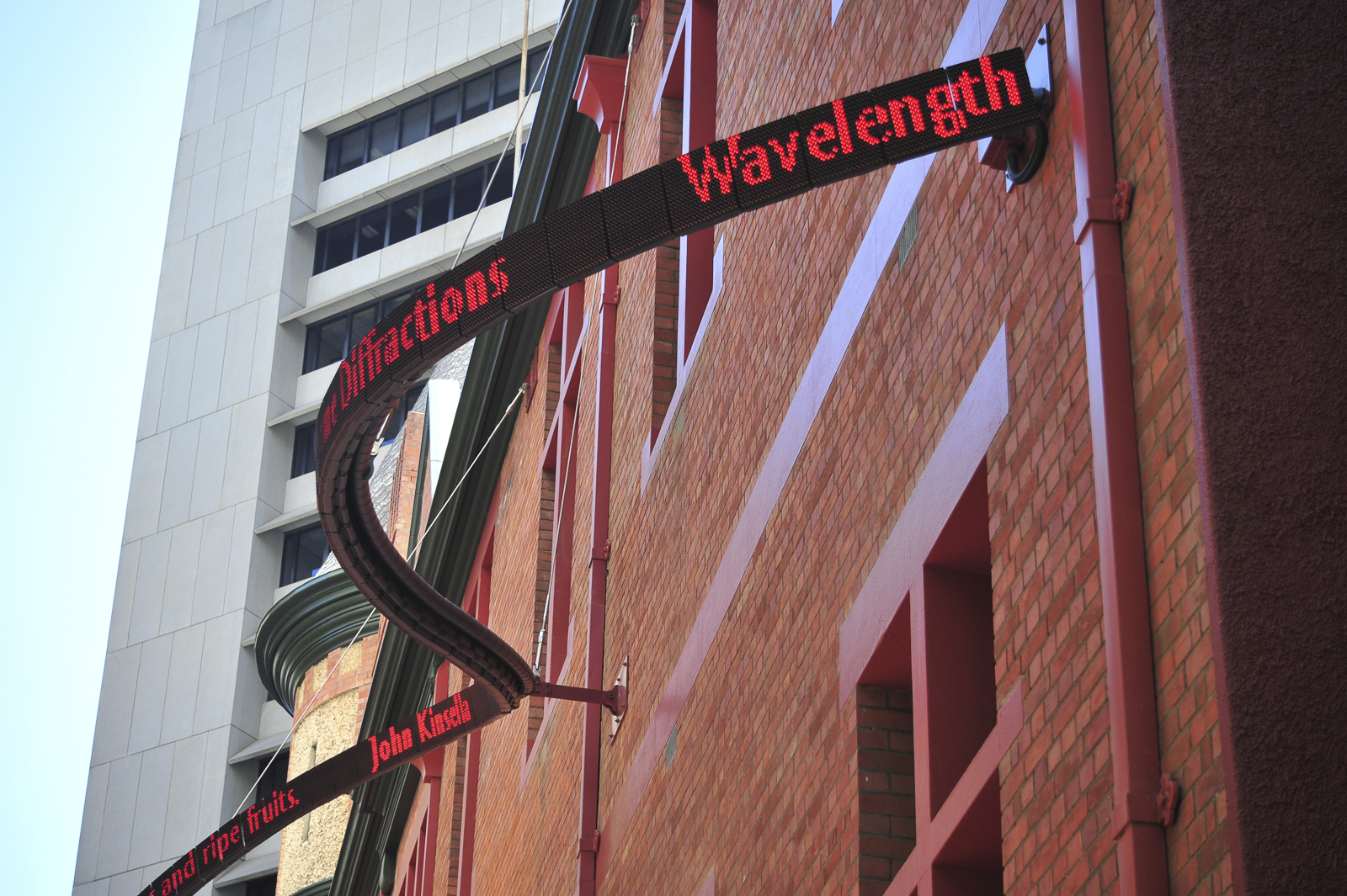The Exchange is an art installation commissioned by RiAus to celebrate its opening in the former Adelaide Stock Exchange. The artwork echoes a stock exchange ‘ticker tape’ as it runs ribbon-like around the building’s exterior. Scrolling LED text features inspirational science-related poetry and quotes, as a manifestation of RiAus’ mission to promote scientific thought and ideas.